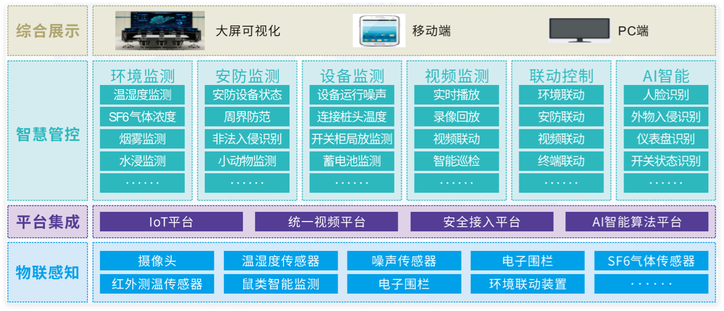 配电站房数字孪生技术是将现实和虚拟技术结合起来,以AI智能识别与物联感知有机结合,全面整合配电站房各信息系统及设备运行状态、环境等数据,实现对配网配电站所运行状态智能监测、风险隐患预警、一键智能巡检、安防消防环境外破等一体化管控,结合通信协同,实现远程协助、视频会商、通信调度、日常智能巡检、事故协同处置,达到“智能值守,统筹管控”目的。